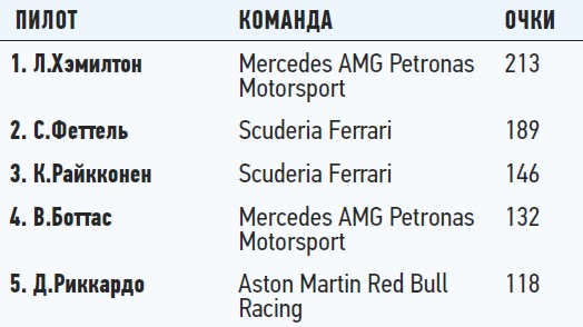 Положение в чемпионате: личный зачет пилотов