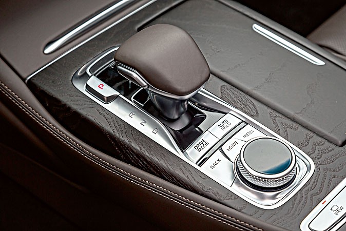 Главное место в K900 – справа сзади. Сдвинув переднее кресло до упора вперед, можно получить очень приличную площадку для ног, да и по высоте седан «не жмет». Кроме того, здесь можно расположиться полулежа, регулировки позволяют. Плавность хода – определенно лучше, чем у многих зубодробительно жестких конкурентов из числа седанов бизнес-класса. За развлечения отвечают экраны на спинках кресел. Графика четкая, интерфейс понятен. Категорически рекомендуем поездки именно на втором ряду!