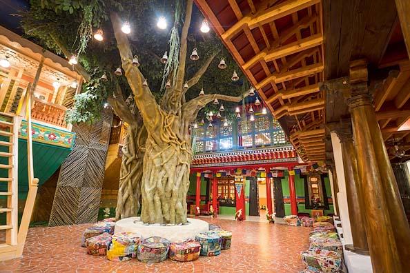 Впрочем, может, все впереди. Парк развивается и налаживает связи с самыми разными учреждениями из стран, которые представлены в комплексе. Вот индийский замок – резные витиеватые окошки привезены из Индии, как и еще более тысячи других предметов. Здесь проходят концерты, организованные при поддержке посольства Индии. На первом этаже представлено традиционное жилище: белоснежный круглый дом племени Рабари, украшенный внутри крошечными зеркальцами. Они, по поверьям племени, отражают все недоброе и злое от дома и его обитателей. В Этномире даже специально разработали программу, где обучают вшивать такие зеркальца в ткань. Это очень сложная работа, которая занимает целых полтора часа.