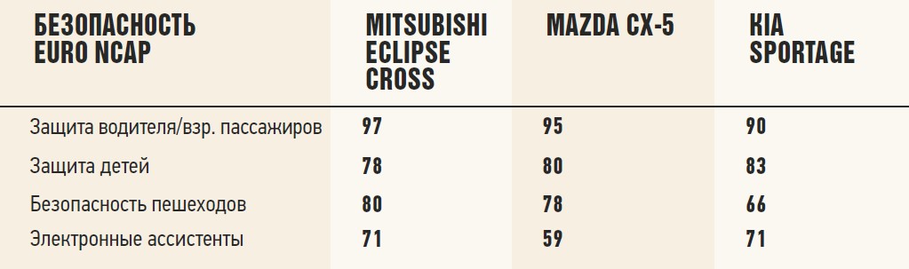 Управлять «Маздой» и корейским кроссовером интереснее. Sportage кажется более резвым на старте, зато в салоне CX-5 меньше шума от мотора и шин. Оба рулятся точно и даже с некоторым азартом. Их подвески плотнее, чем у Mitsubishi, тем не менее с острыми стыками и «лежачими полицейскими» справляются лучше.