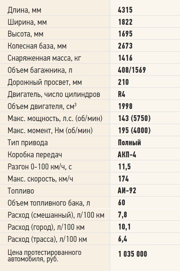 Если при обгонах на трассе кроссовер бывает шумноват даже зимой, изоляция моторного отсека оставляет желать лучшего, то на бездорожье он наверняка доставит удовольствие. Пасуя перед 210 мм клиренса и системой полного привода All Mode 4x4, сугробы сами расступаются перед нами. И секретов тут нет. Машина легкая, а на принудительной первой передаче прет словно на «понижайке» вплоть до скорости в 40 км/ч. А противобуксовочная система удачно имитирует отсутствующие блокировки дифференциалов.