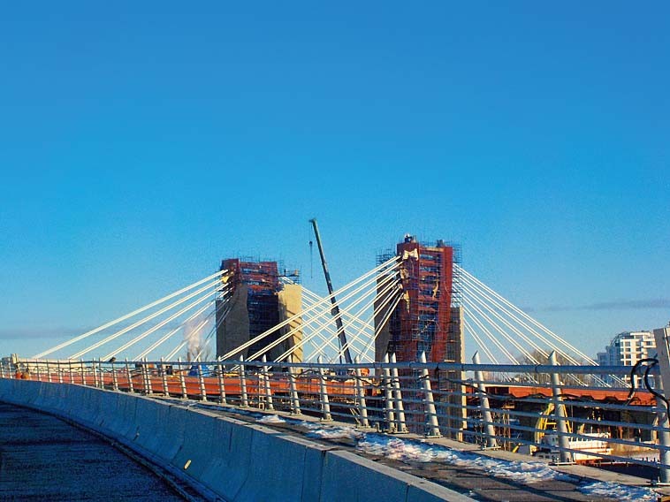 В САНКТ-ПЕТЕРБУРГЕ закончен монтаж вантовой системы строящегося моста через остров Серный (мост Бетанкура). Специалисты установили 48 вант – 24 пары, общая длина которых составляет более трех км. При этом длина самого короткого ванта составляет 31,7 метра, а самого длинного – 99,3 метра. Конструкция рассчитана как минимум на 100-летний срок службы. Вантовая система моста через Серный включена в совместную работу с пролетом, в том числе с судоходным, через реку Малая Нева. Мост через остров Серный, который соединит Васильевский остров и Петроградскую сторону, строится к ЧМ по футболу, по нему смогут передвигаться автомобили и пешеходы. А окончание стройки ранее было намечено на конец апреля. Ох, не успеют…