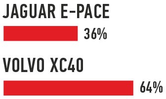 Jaguar E-Pace хоть и младший кроссовер в семействе, но демонстрирует очень зрелые повадки. Яркий, быстрый, азартный, оснащенный по последнему слову техники. Все нравится! Только цены кусаются. Когда в первый раз смотришь на Volvo XC40, кажется, что этот угловатый малыш совсем лишен темперамента. Но чем дольше общаешься с ним, тем большей симпатией к нему проникаешься. Его умение совмещать практичность и комфорт с великолепной техникой прохождения поворотов реально подкупают. Из двух я бы выбрала его.