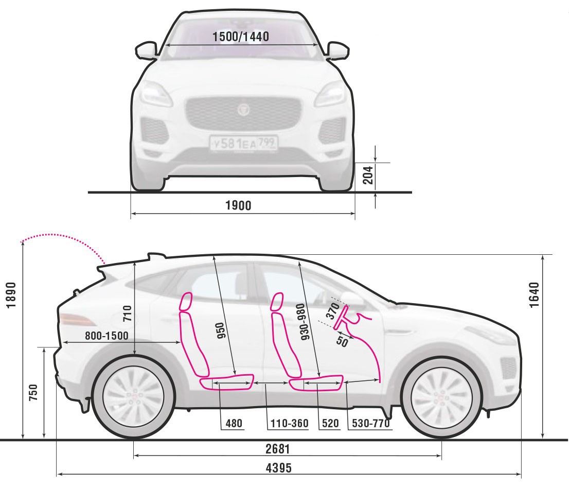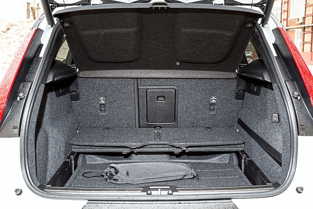 По паспортным данным грузовой отсек «Ягуара» вместительнее, но наши измерения показали обратное. Не менее очевидно отсутствие в багажнике «британца» дополнительных отделений. Диван тоже не самый просторный. За водителем ростом 185 мм столь же высокий пассажир упрется своими коленями в спинку переднего кресла. И хотя на заднем торце центрального бокса гнездятся аж три USB-разъема, обогрева дивана в E-Pace не предусмотрено.
