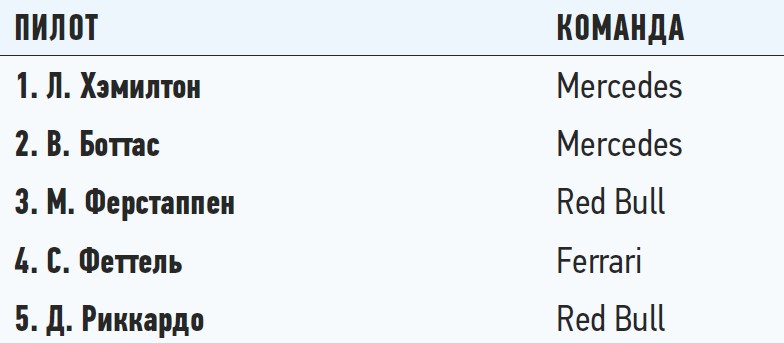 Положение в чемпионате: личный зачет пилотов