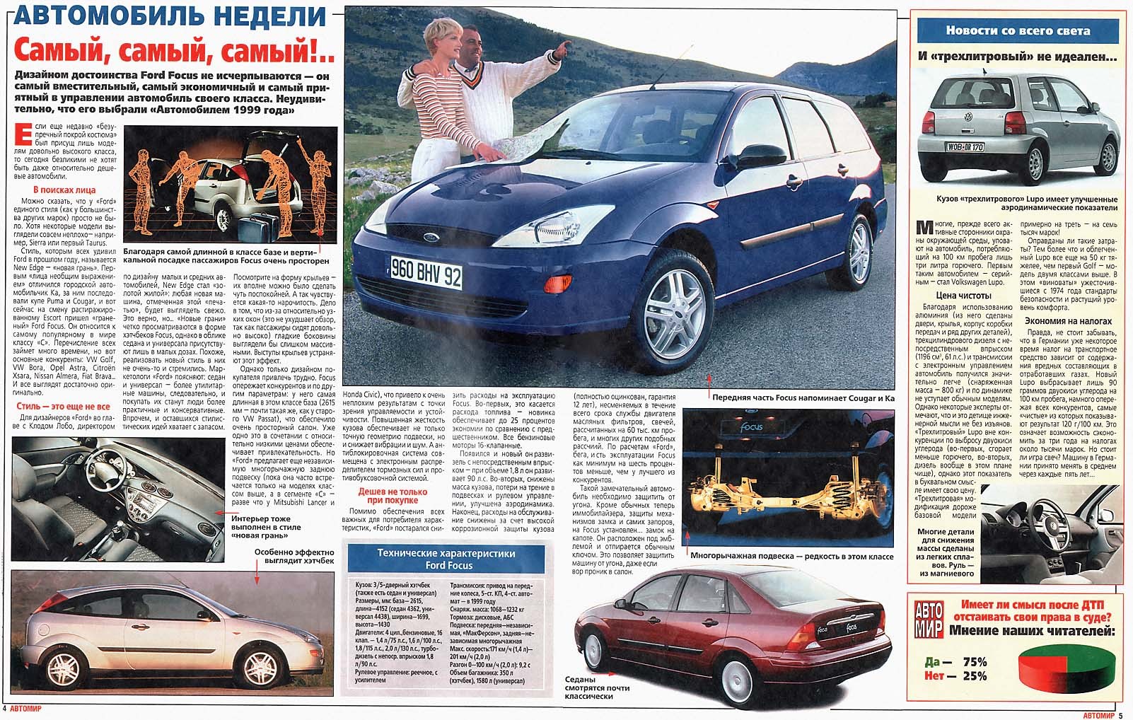«Стиль, которым всех удивил Ford в прошлом году, называется New Edge – «новая грань». Первым «лица необщим выражением» отличился автомобильчик Ka,за ним последовали купе Puma и Cougar,и вот сейчас на смену растиражированному Escort пришел «граненый» Ford Focus».