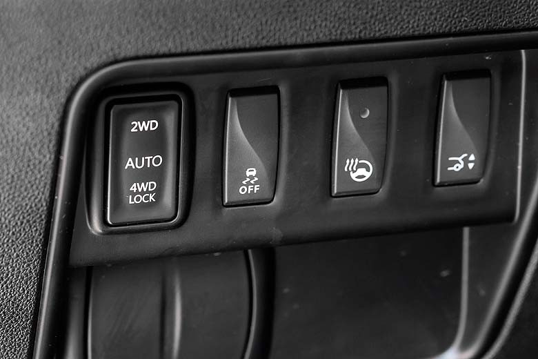 Клавиша управления режимами трансмиссии у Koleos расположена слева от руля. Там же разместили кнопку подогрева рулевого колеса, что не слишком удобно