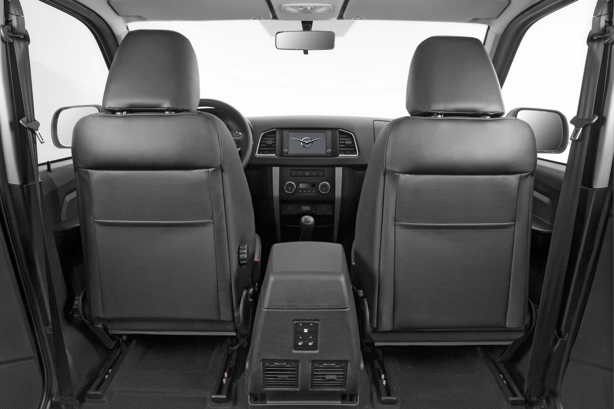 Устроиться за рулем обновленного Пикапа стало проще – руль благодаря новой колонке настраивается не только по высоте, но и по вылету, да и регулировка кресла по высоте в наличии. Комбинация приборов радует четкой графикой и регулируемой подсветкой, интенсивность которой меняется колесиком слева от руля. Главное не перепутать его с точно таким же, но отвечающим за гидрокорректор фар – на ощупь это проще простого.