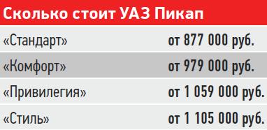 Регулярные обновления идут на пользу. Не так давно для того, чтобы задействовать «понижайку», в Пикапе нужно было размашисто орудовать вторым рычагом, а вместо пассажирской подушки безопасности был привинчен мощный поручень. Но УАЗ и теперь остается УАЗом. Сделан он грубовато, однако и по дороговизне – далеко не рекордсмен.