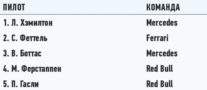 Положение в чемпионате: Личный зачет пилотов