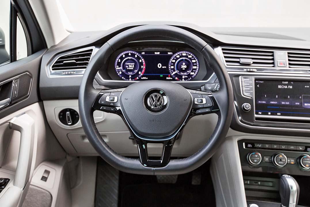 Руль. О нем вообще не думаешь – это продолжение твоих рук, как те – проводник твоей мысли. Подумал, что неплохо бы уйти порезче на развязку – легкое движение штурвала с одновременным добавлением газа – и машина азартно вкручивается в поворот. Это как раз тот момент, в который можно ощутить разницу между 180-сильным мотором и более доступным 1.4 TSI (150 л.с.). По скорости старта, отдачи двигателя Tiguan 2.0 – это задиристая легковушка. Конечно, не будем забывать, что мы говорим о SUV: пара амплитудных извивов корпусом вызывает занос, который, по счастью, мгновенно гасит система ESP. Пошалить здесь, пожалуй, еще сложнее, чем на старом Tiguan. Подвеска уверенно держит дорогу, хотя мягкостью не отличается: стыки эстакады преодолеваются с ощутимым шлепком покрышек.