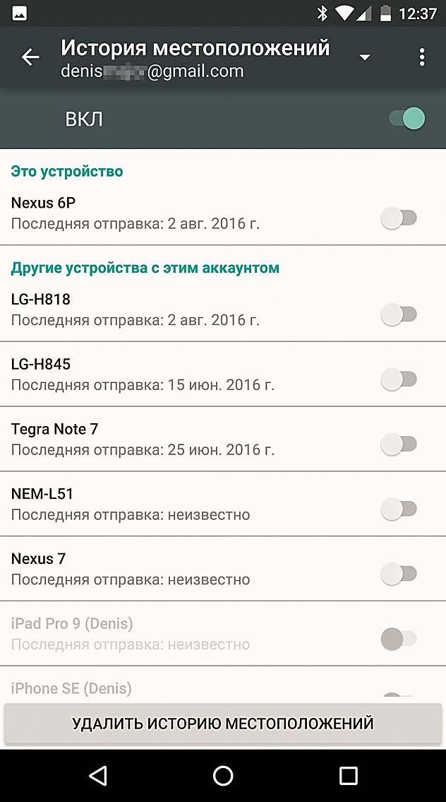 Отключите резервирование данных, иначе все ваши пароли к WiFi окажутся на серверах Google (рис. слева). Придется избавиться и от сохранения истории вашего местоположения (ниже)