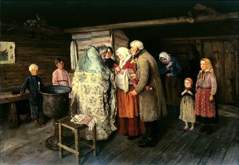 Крестили детей обычно на второй-третий или сороковой день после рождения. Родители и гости проводили множество обрядов, которые должны были привлечь к новорожденному счастье, красоту и богатство. Сто лет назад на крестины готовили кутью — сегодня это блюдо подают лишь на поминки. Крестильная каша была скоромной: к пшенице или ячменю, помимо традиционного меда и изюма, добавляли сливочное масло, молоко, яйца. Готовила блюдо повитуха — «бабка». «Бабкину кашу» выносили в конце застолья, крестные ее «выкупали», заплатив несколько монет. Отцу ребенка «бабка» подавала пересоленную и сильно перченную кашу, приговаривая: «Каково солоно было матери родить тебе сына, такова и тебе будет эта каша».