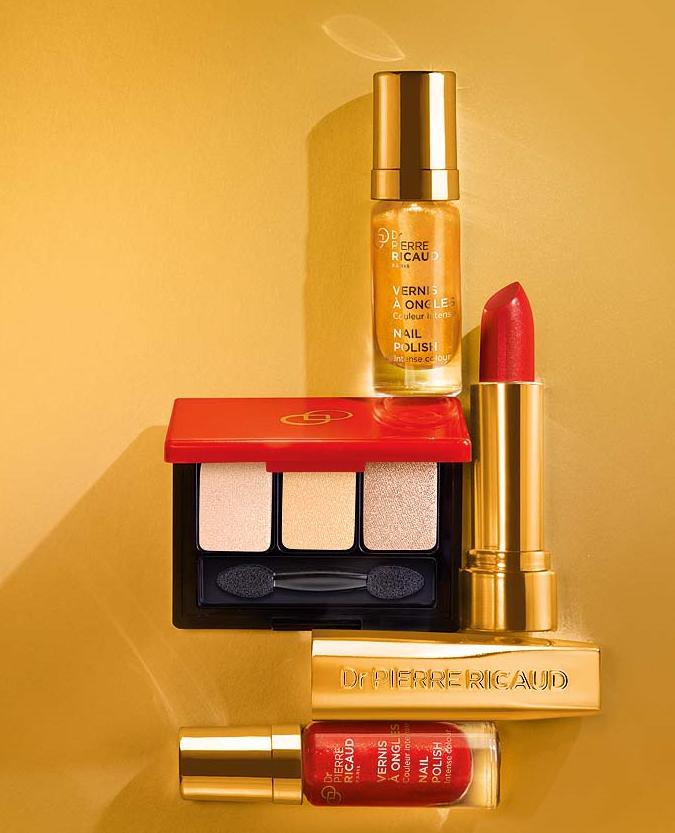 Средства из новогодней коллекции «Огненное Золото» от Dr. Pierre Ricaud (лак — ок. 490 руб., помада — ок. 990 руб., тени — ок. 1650 руб.) сделают вас звездой праздничных вечеринок.