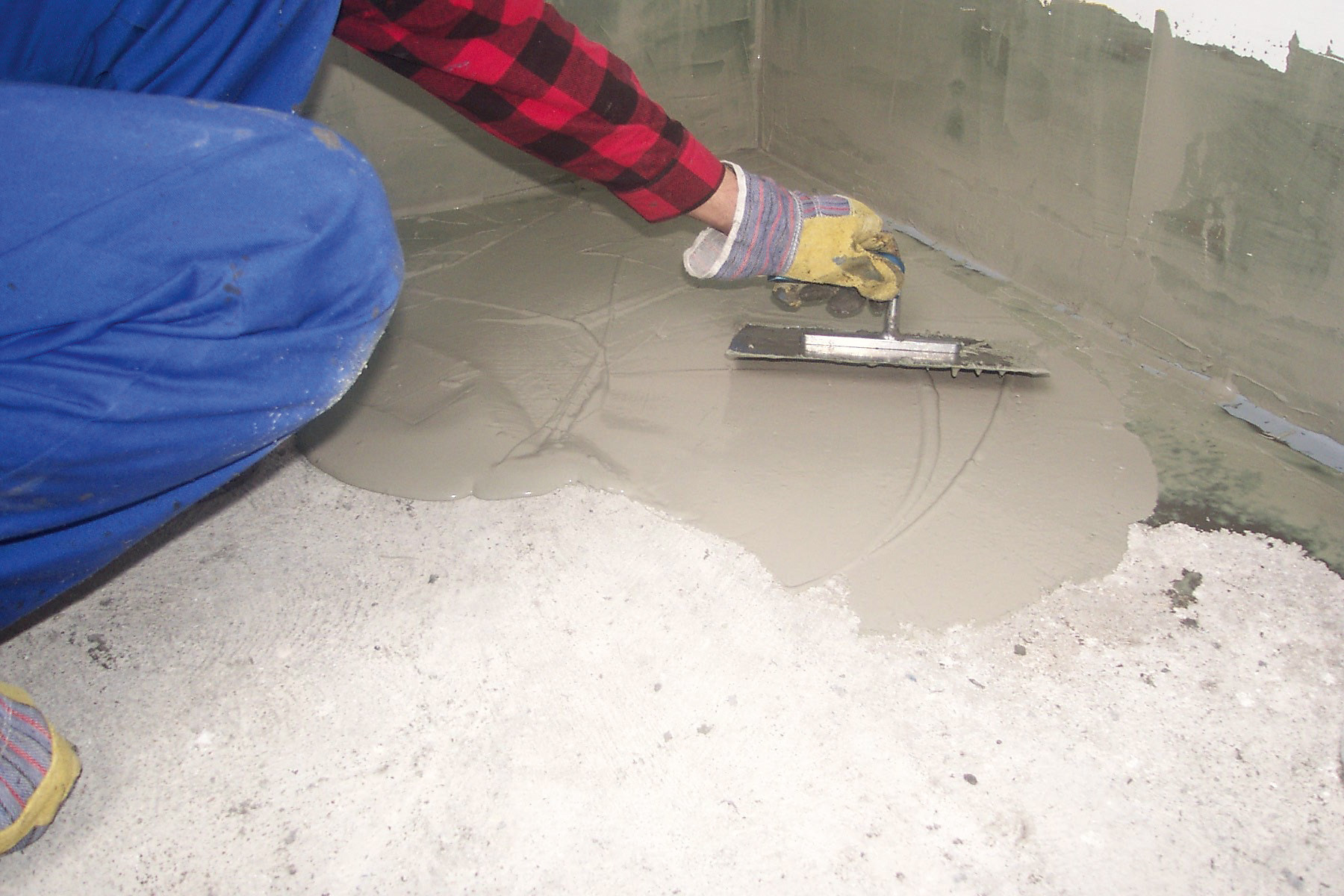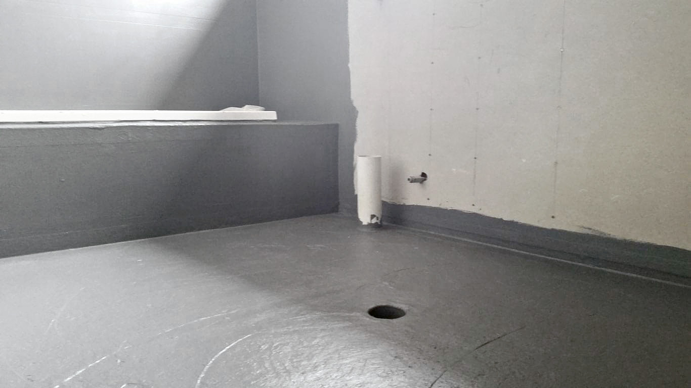 К устройству пола квартирного санузла приступают после возведения перегородок. Первый этап работ — гидроизоляция перекрытия.