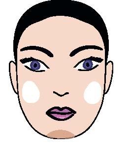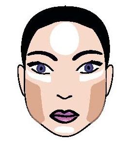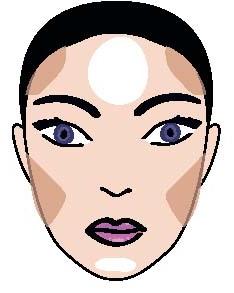 Затемни виски и верхнюю границу скул. Подбородок и центральную часть лба, наоборот, высветли.