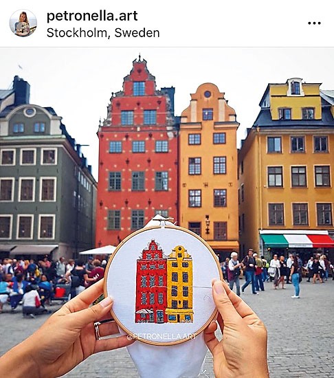 Просто фотографировать достопримечательности скучно! В этом убеждены Чарльз Генри и Элин Петронелла. Поэтому семейная пара решила не только снимать на фотоаппарат, но и вышивать все увиденное в своих путешествиях. Получается оригинальный микс. Зайди в аккаунт Элин и оцени сама.