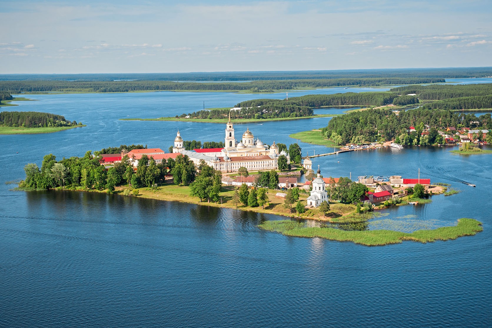 Это не одно озеро, а система озер в Тверской области, связанных протоками. На Селигер удобнее всего ехать на личном транспорте, так как общественный не сильно развит. Выбор кафе и ресторанов тоже оставляет желать лучшего, зато вариантов проживания масса: от палаточных кемпингов и турбаз до отдельных коттеджей и роскошных гостиничных комплексов. Скучать туристам не придется: предлагают и рыбалку, и прогулки на катерах и лодках, катание на бананах и прочие водные развлечения. Даже водные горки есть на некоторых пляжах. Любителям экскурсий стоит заехать в Осташков, посетить монастырь Нилова пустынь и побывать на острове Городомля. Именно здесь художник Иван Шишкин нашел натуру для картины «Утро в сосновом лесу». Конечно, без мишек.