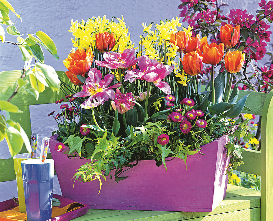 Сочетай тюльпаны разных расцветок и форм. Летом луковицы можно выкопать и на освободившуюся клумбу высадить яркие однолетники.