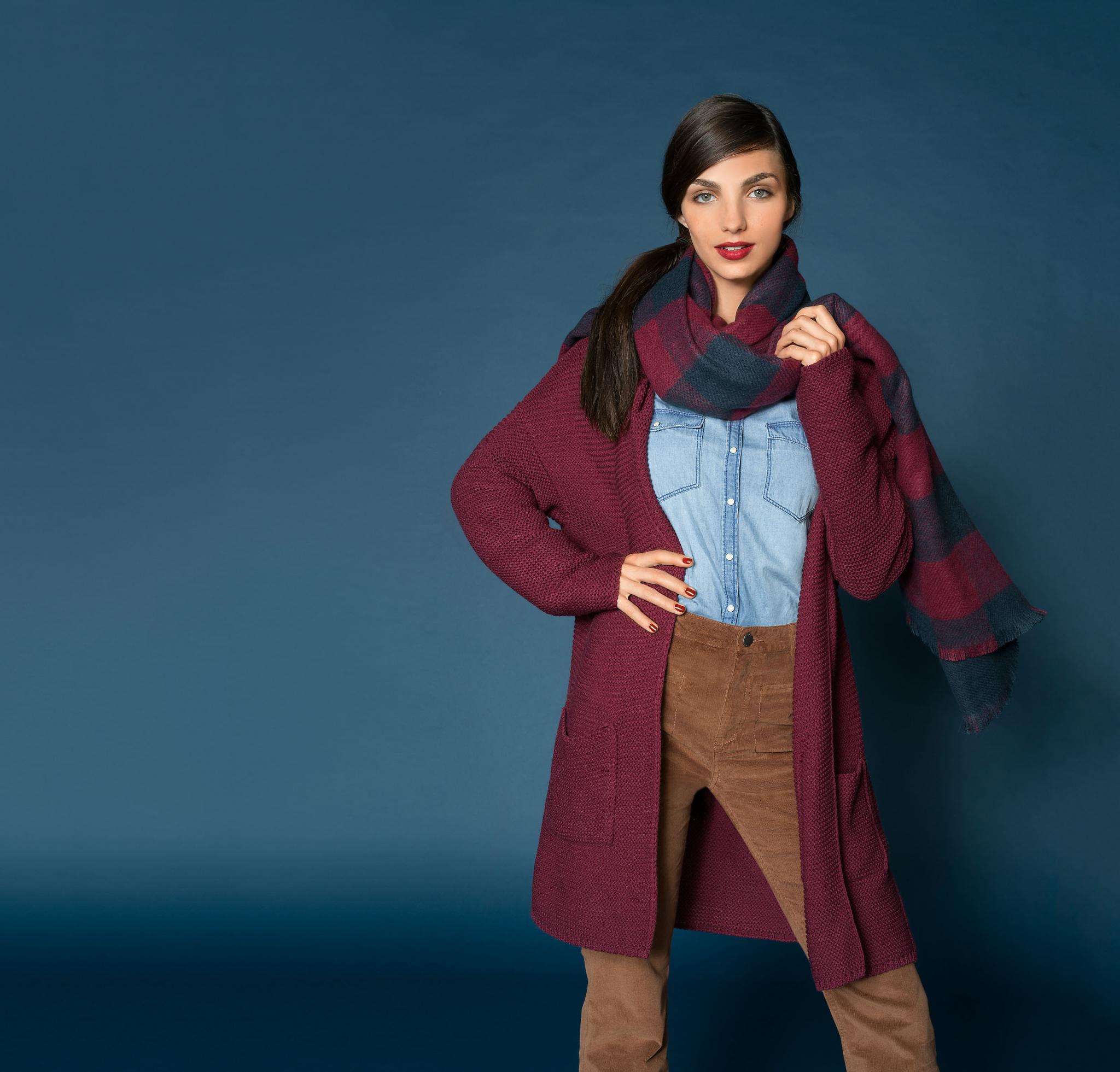 Не решаешься примерить вещь насыщенного алого цвета? Попробуй дополнить привычный базовый комплект уютным кардиганом спокойного оттенка бордо или объемным вязаным шарфом – носить их можно с чем угодно.