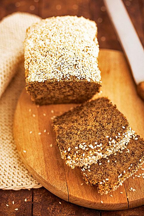 2. Духовку нагреть до 200°. Тесто поместить в форму, смазанную любым жиром, посыпать кунжутом и выпекать около 50 мин.