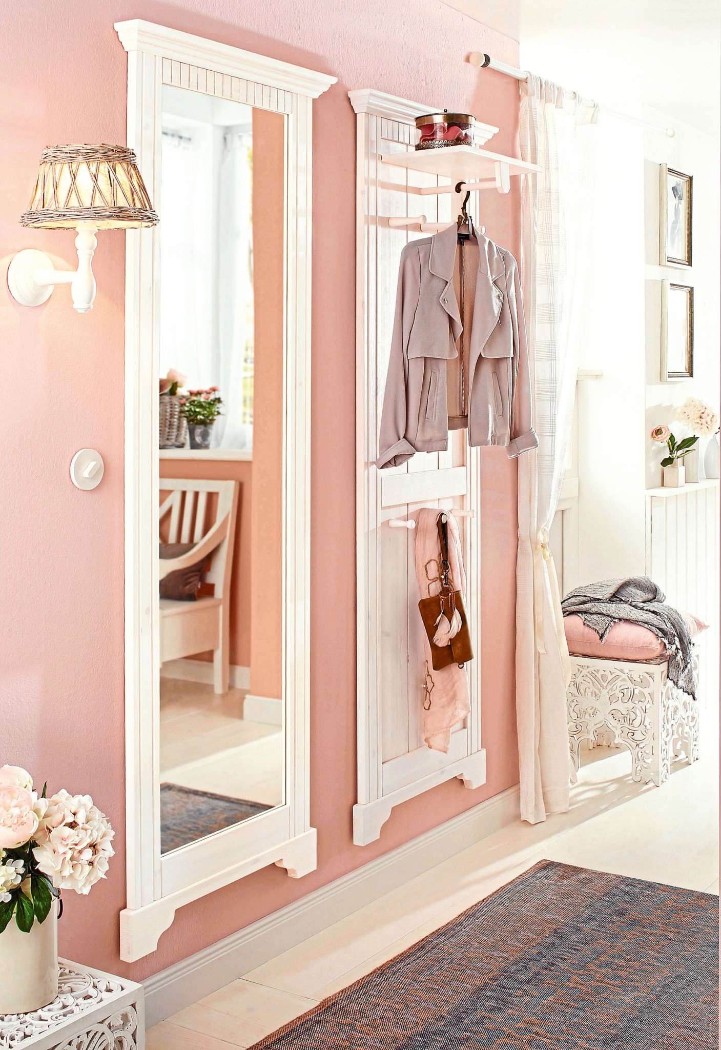БЛИЗНЕЦЫ. Классное и необычное решение для прихожей – аналогичные по размеру и стилю вешалка и зеркало. В магазине их будет непросто найти – лучше сразу сделать под заказ.