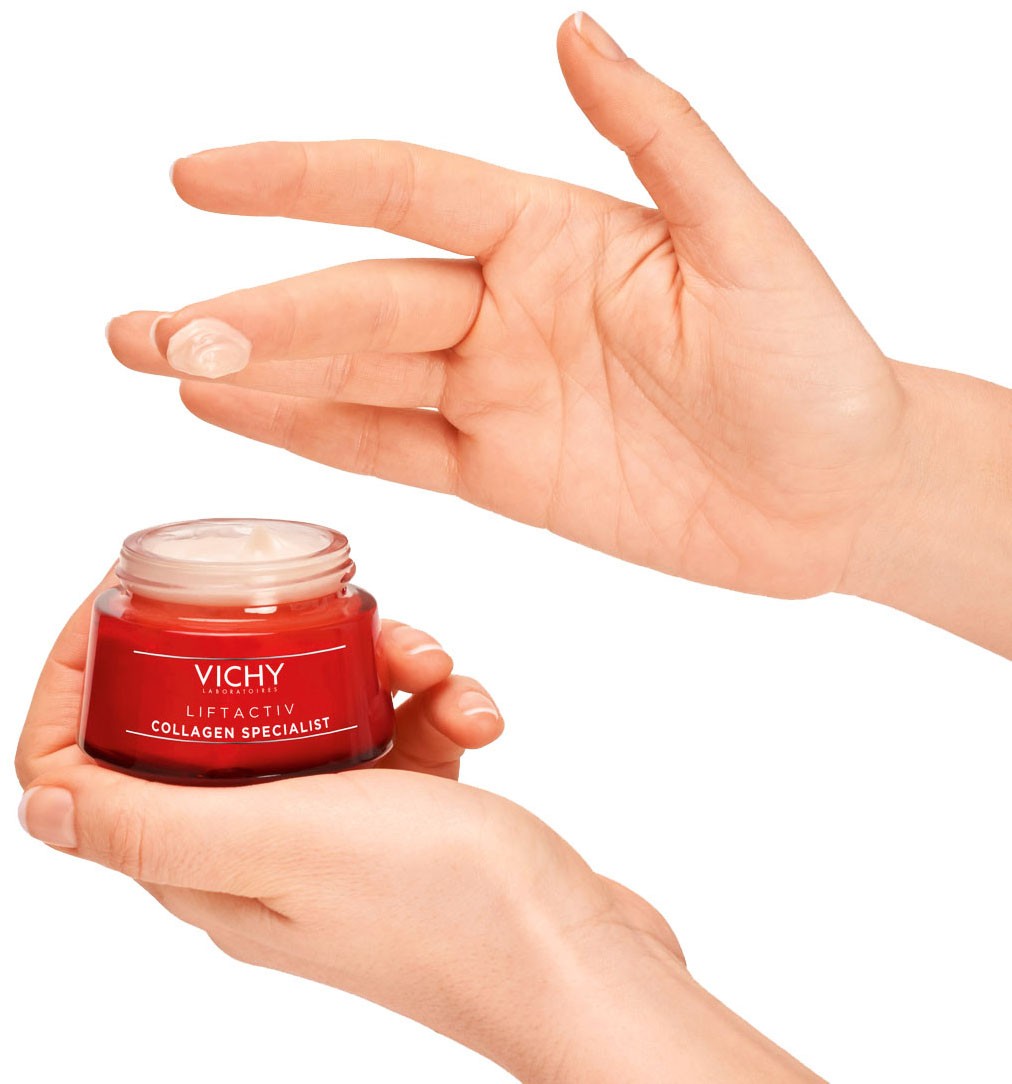 Антивозрастной крем VICHY «Коллаген Специалист» Liftactiv преобразит зрелую кожу, которой не хватает упругости и сияния. Мощная формула с антиоксидантом эперулином, витамином С и биопептидами уже после первого применения крема повысит тонус кожи на 52%! Через 4 недели морщины сократятся на 16%, а через 2 месяца подтянется овал и уменьшится пигментация.