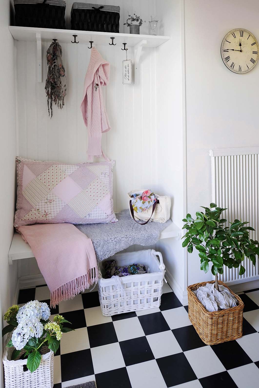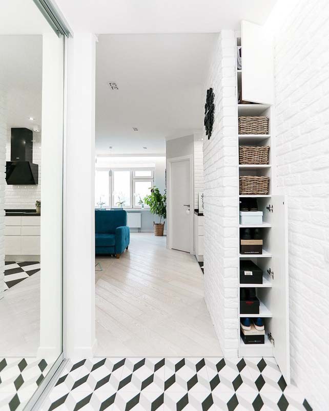 Чаще всего ниши в коридорах используются по стандартному сценарию – переделываются во встроенные шкафы. Тебе не нужен такой? Тогда просто устрой место, где можно будет поставить сумку и переобуться.