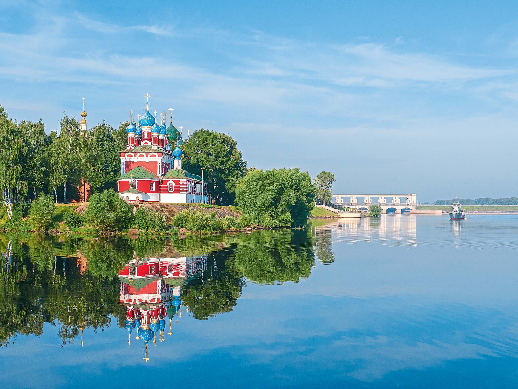 Британская газета The Telegraph включила церковь Димитрия на Крови (на фото) в число 23 самых красивых храмов в мире. Те, кто видел ее, наверняка согласятся. Стоящая на живописном берегу Волги нарядная церковь с голубыми куполами – символ и гордость Углича. Построена она в том месте, где был убит царевич Дмитрий. Говорят, к этому приложил руку Борис Годунов. Но оставим разбираться с версиями историкам и кинематографистам (можно посмотреть сериал «Годунов»), а сами погуляем по красивому городу, заглянем в Музей гидроэнергетики, где можно узнать много нового о плотинах, дамбах и ГЭС.