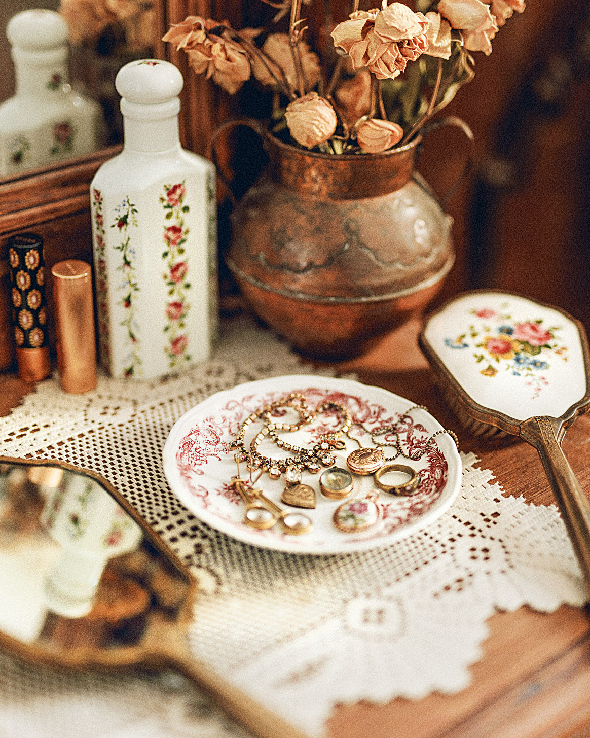 Если от чайной пары осталось лишь блюдце, его можно использовать для хранения украшений. На расписном фарфоре даже бижутерия будет смотреться по-особенному, создавая атмосферу винтажного будуара.