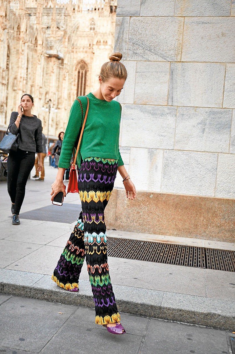 Осенью обязательно примерь теплый вязаный костюм или составь уютный комплект сама: брюки и джемпер из пряжи – отличная пара.