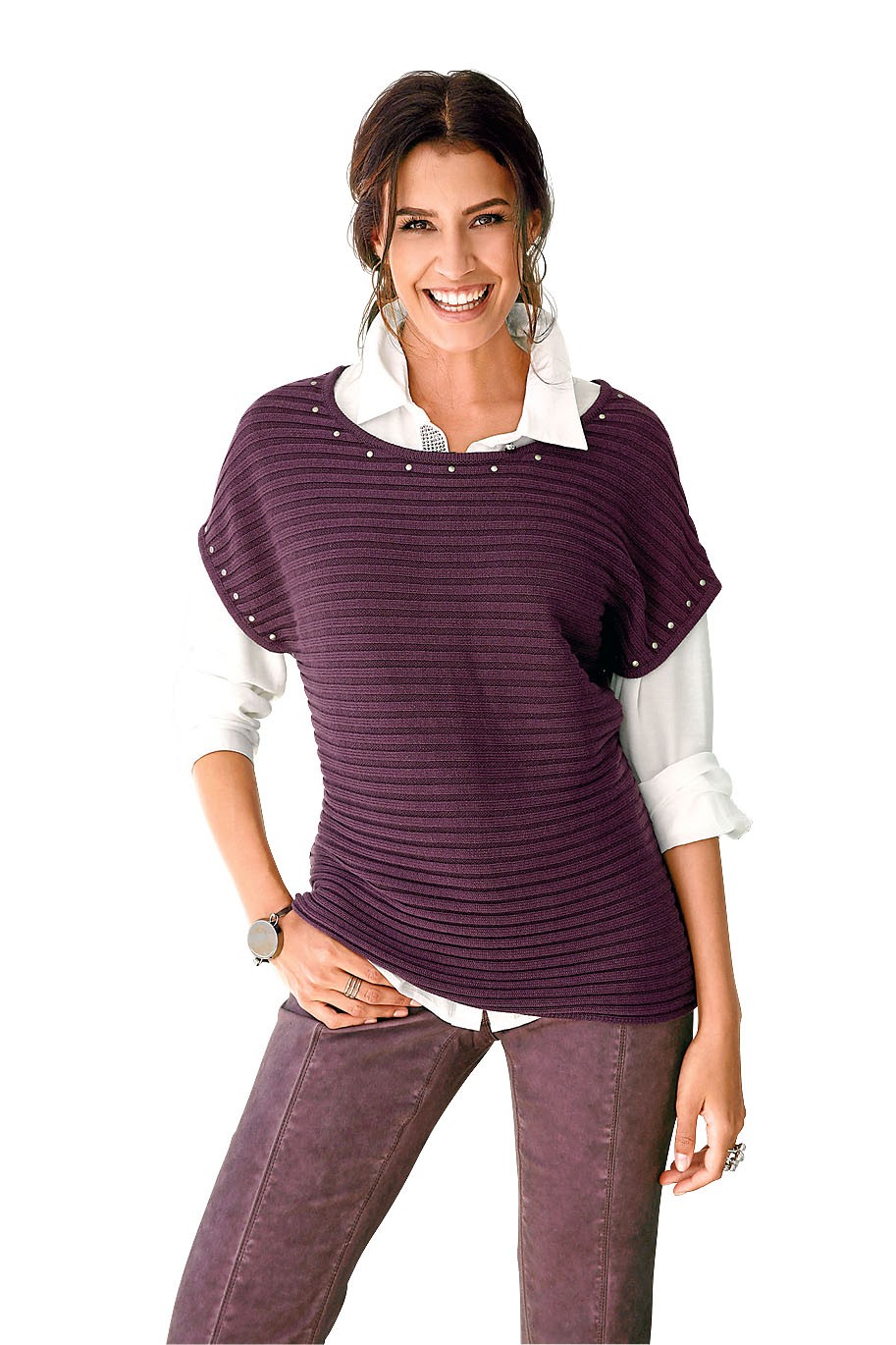 Вещи, словно связанные вручную, с разными вариантами вязки и узорами впишутся в образы в стиле городской шик. Попробуй разнообразить ими свой офисный гардероб.