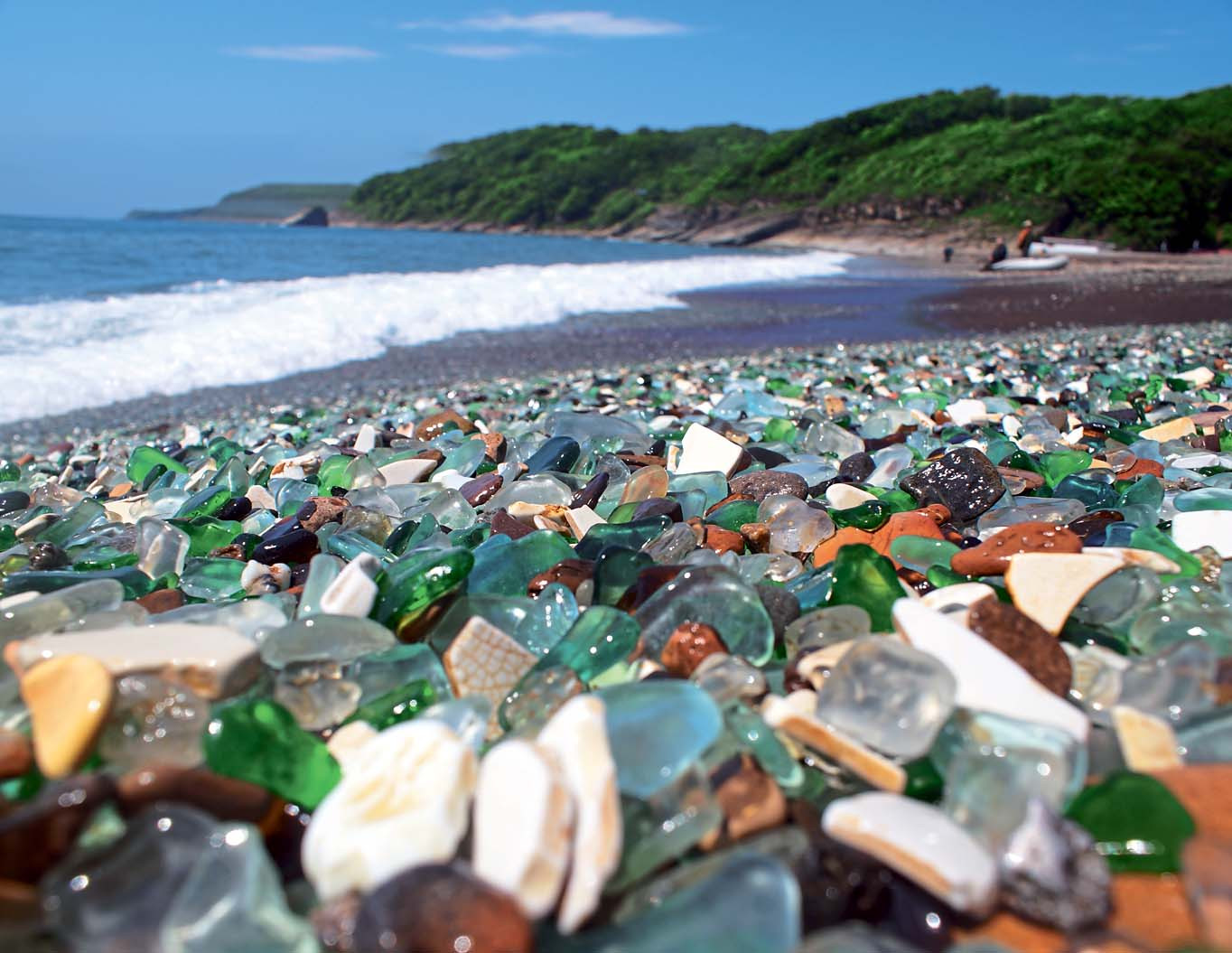 Бухта Стеклянная во Владивостоке – результат совместного «творчества» человека и природы. Когда-то неподалеку отсюда была мусорная свалка, куда свозили стеклянные, керамические, фарфоровые и иные хрупкие отходы. Потом ее закрыли, но море продолжало выбрасывать «приветы» из прошлого в виде гладко обтесанных ярких осколков. Со временем небольшой участок на берегу Уссурийского залива стал напоминать разноцветную мозаику стекляшек, за что это место и прозвали Бухтой Стеклянной. Увы, сегодня ей грозит исчезновение – каждый отдыхающий так и норовит прихватить на память гладкий подарок моря.