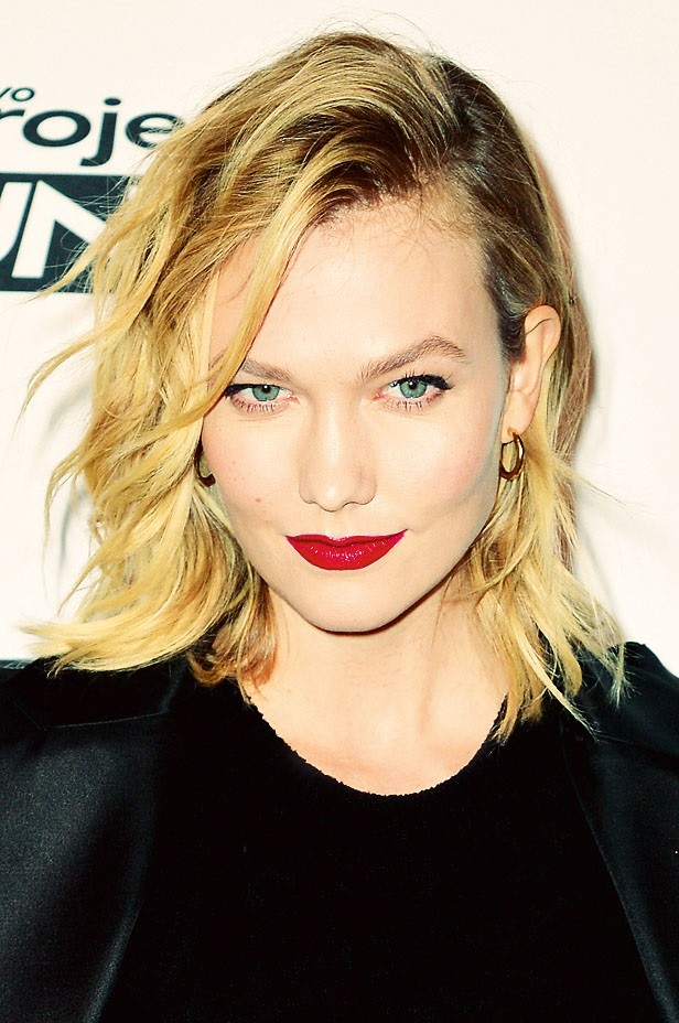 Укладку делай утюжком, подкручивая пряди наружу. Часть из них в завершении перекинь на лицо, предварительно сделав пробор. Помимо красной помады не забудь подчеркнуть брови: открытый лоб привлечет внимание к глазам.