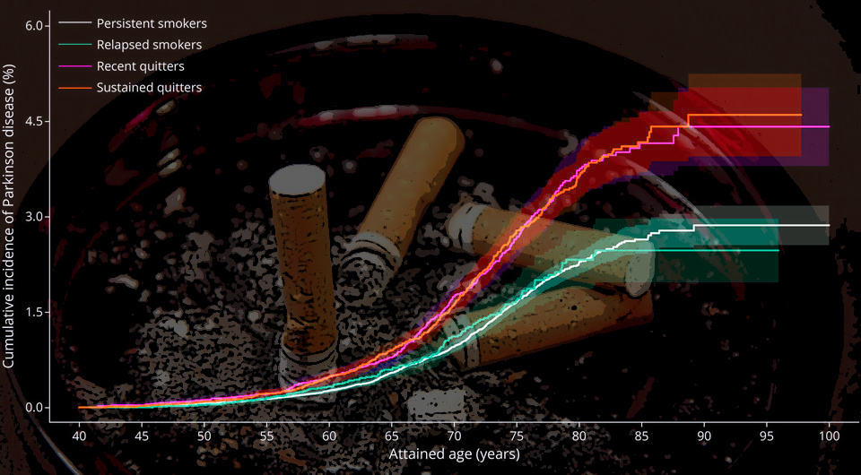 Корейские ученые провели масштабное ретроспективное когортное исследование и обнаружили, что отказ от курения связан с повышенным риском развития болезни Паркинсона, даже если принимать во внимание более высокую смертность среди курильщиков. Статья об этом опубликована в журнале Neurology.
