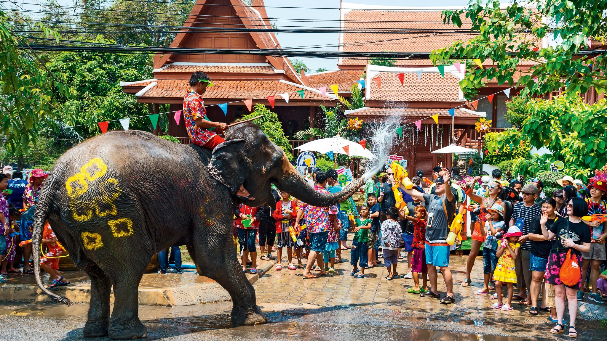 Важное отличие: в Тае в веселье участвуют не только люди, но и слоны. В ход идут бочки, ведра, водяные пистолеты и хоботы.
