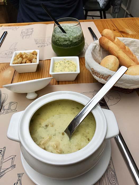 «Вам меню? Это там, где хозяева свою пищу сами не едят. Мы сегодня кушаем чихиртму, баклажаны в грецких орехах, цыпленка табака, хачапури, хлеб. Вино, естественно. Присоединяйтесь — не пожалеете».