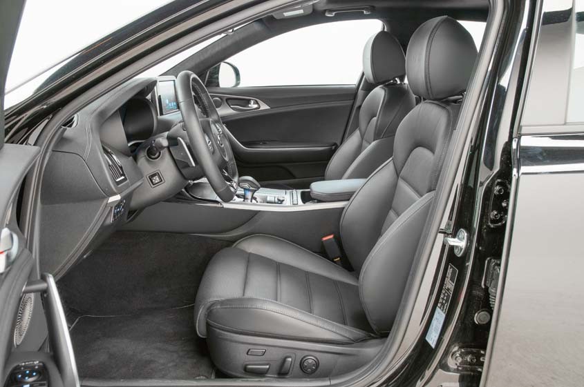 Цена в России на Stinger начинается с 1 929 900 руб. (без учета специальных предложений) на заднеприводную версию со 197-сильным мотором. А за ту модификацию, что приняла участие в тесте, придется выложить 3 259 900 руб. Однако эта цифра подразумевает абсолютно полный набор возможного оснащения (в него входит даже люк). Предусмотрен и активный круиз-контроль (с функцией старт-стоп), и ассистент рулевого управления, способный самостоятельно удерживать автомобиль в занимаемой полосе движения. На их испытание мы убили кучу времени — системы, конечно, не самые продвинутые, но в целом работают на твердую четверку.