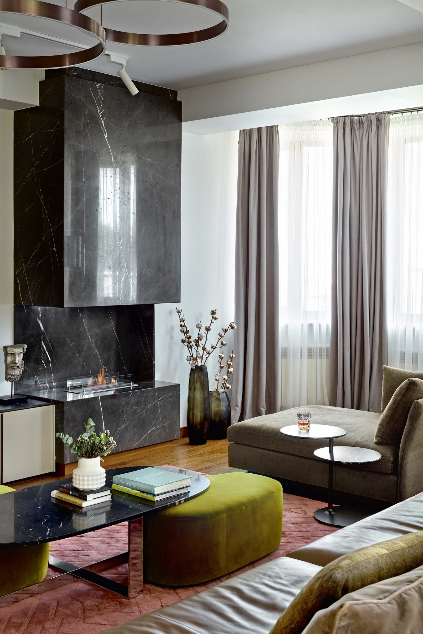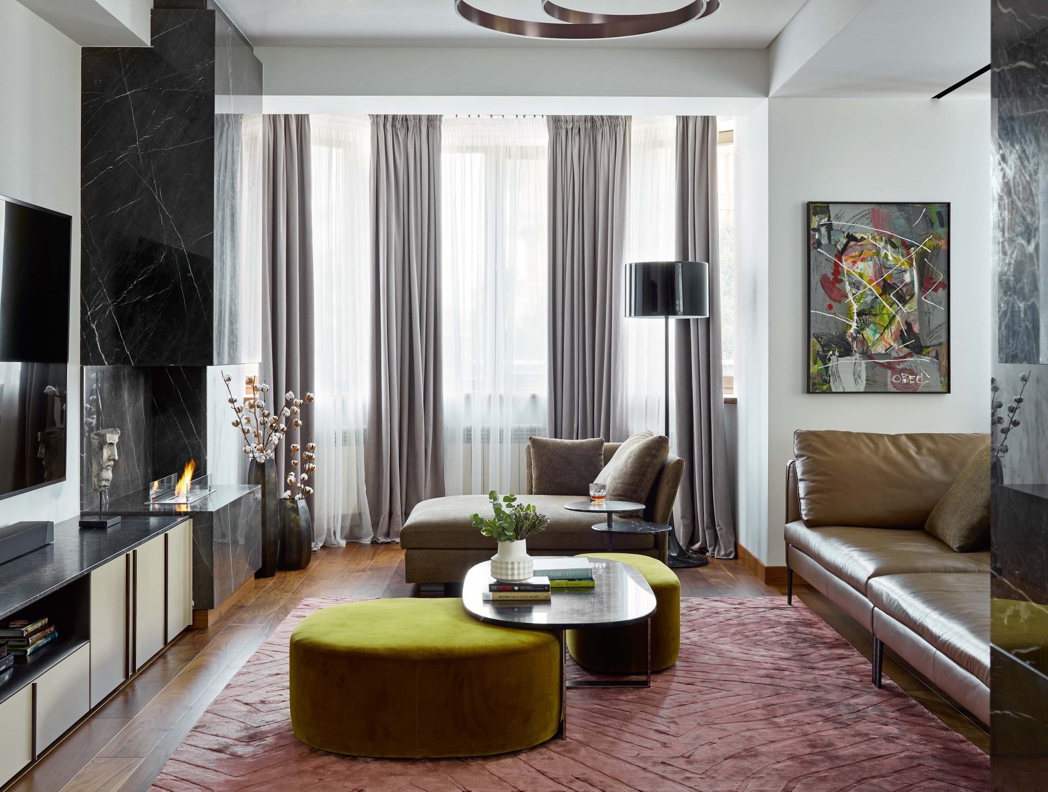 На создание этого современного, минималистского интерьера Максима Гаевского вдохновили природа и панорамные виды