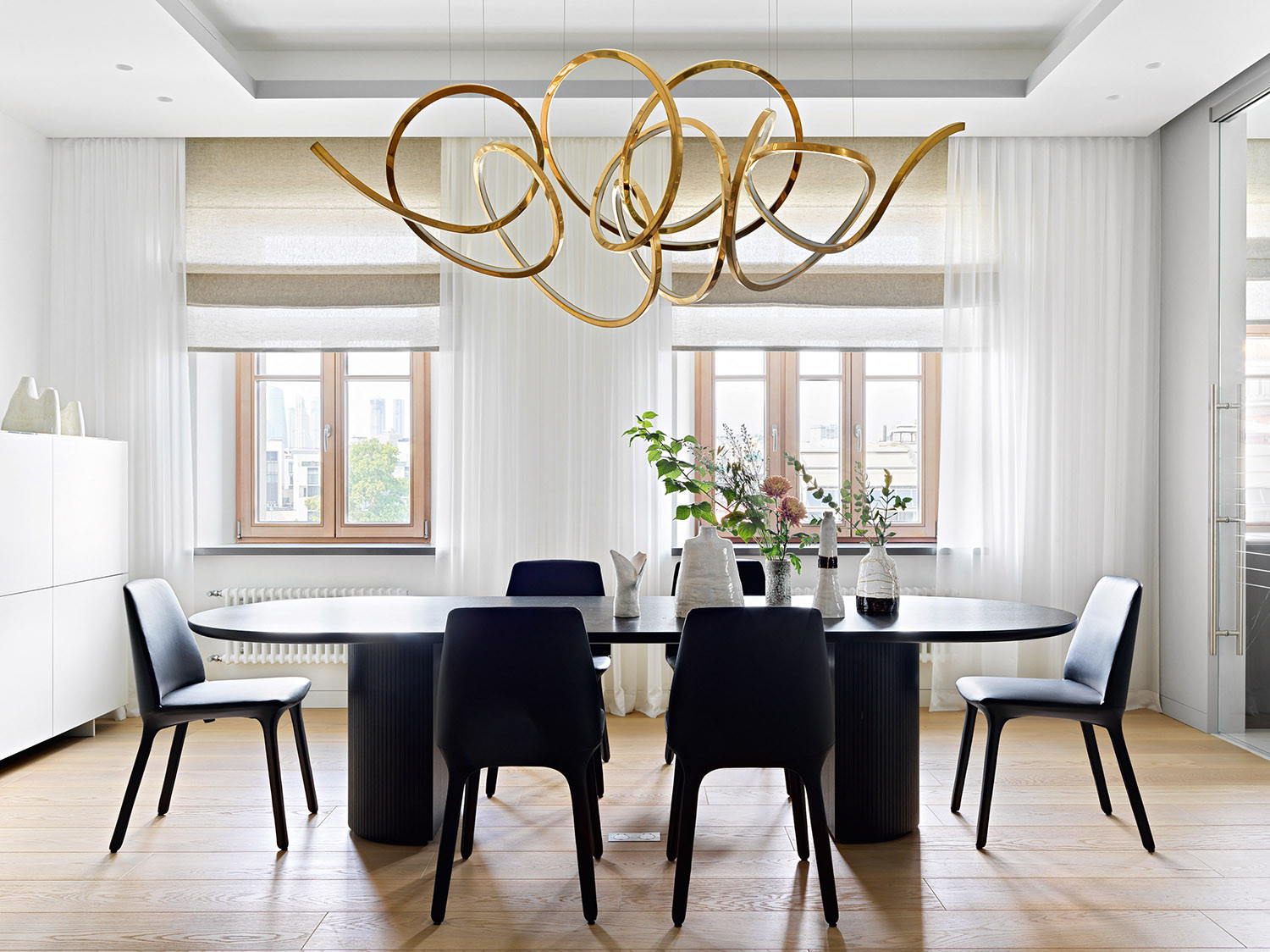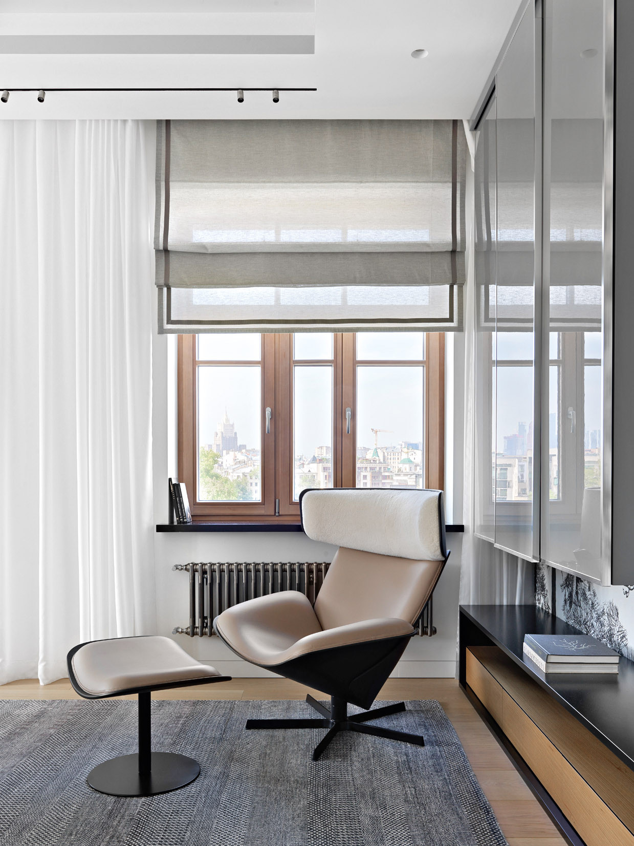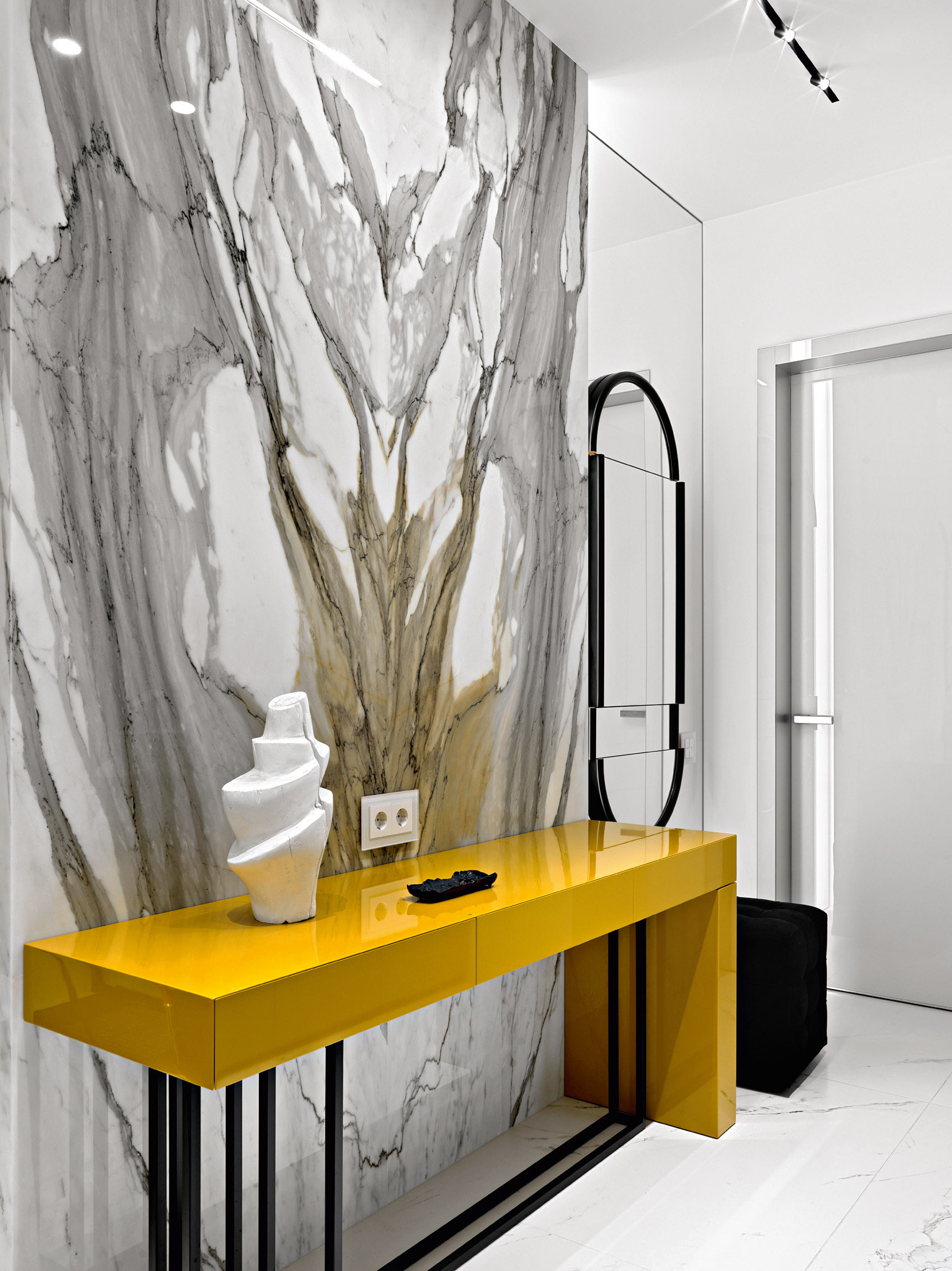 В этом современном и лаконичном интерьере по проекту Оксаны Сальберг–Вачнадзе привлекают внимание нестандартные планировочные решения и филигранная работа с цветом и фактурами