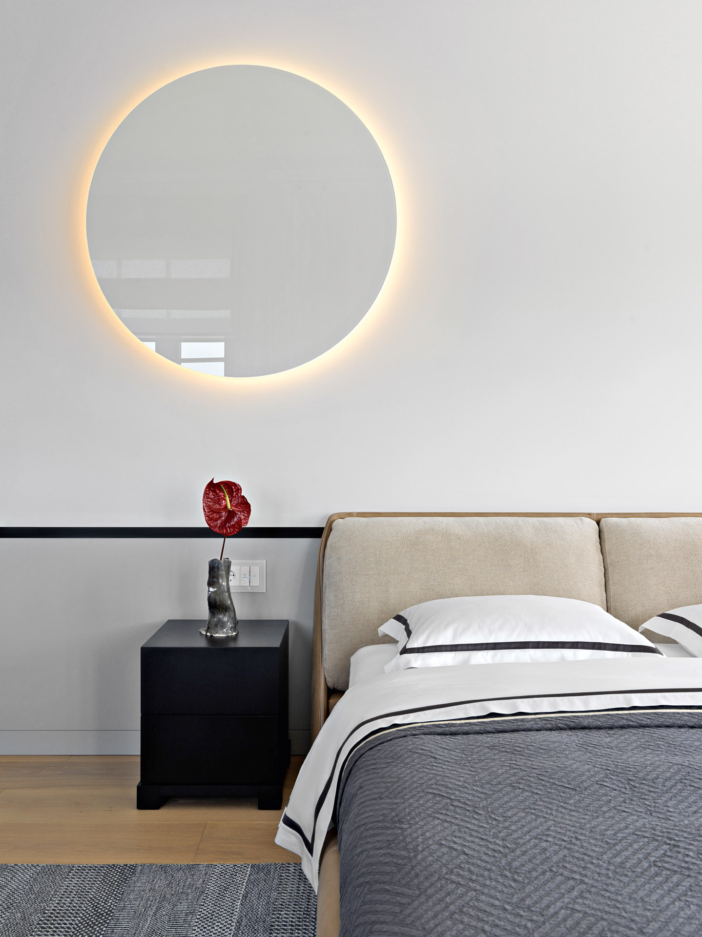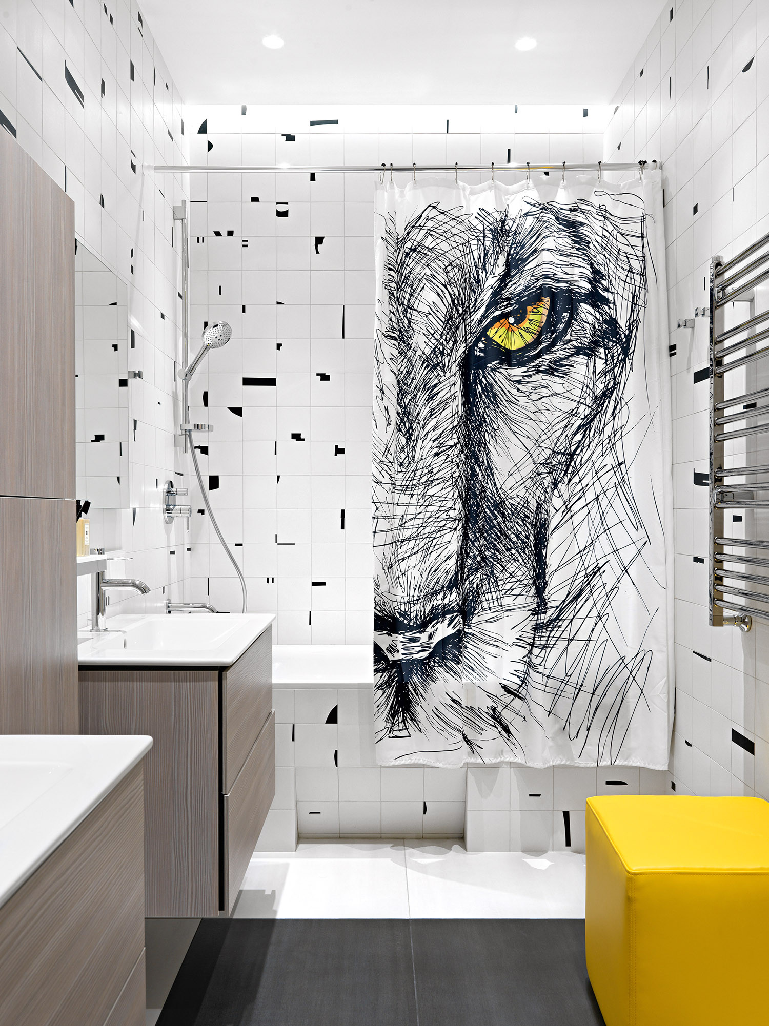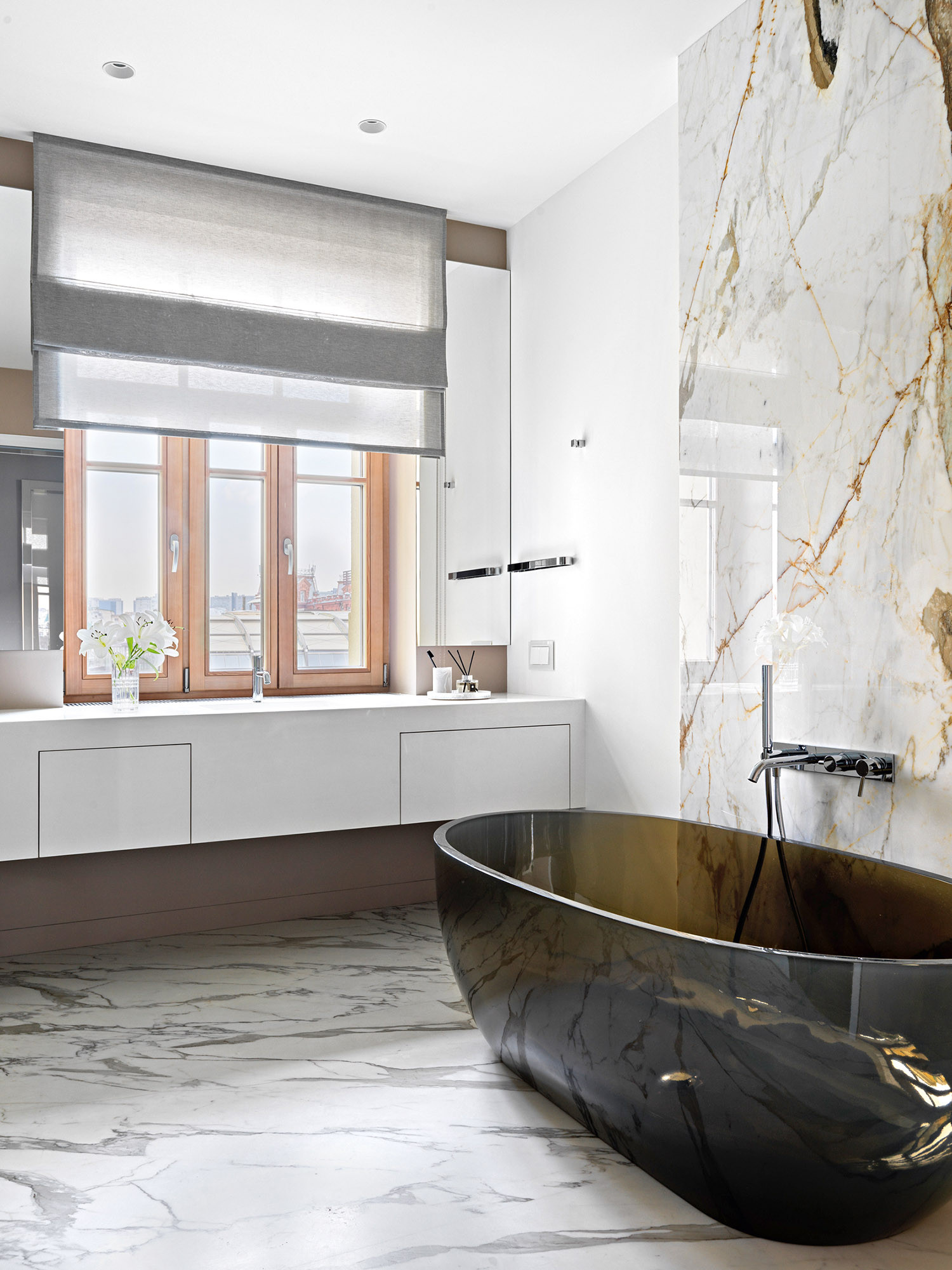 В этом современном и лаконичном интерьере по проекту Оксаны Сальберг–Вачнадзе привлекают внимание нестандартные планировочные решения и филигранная работа с цветом и фактурами