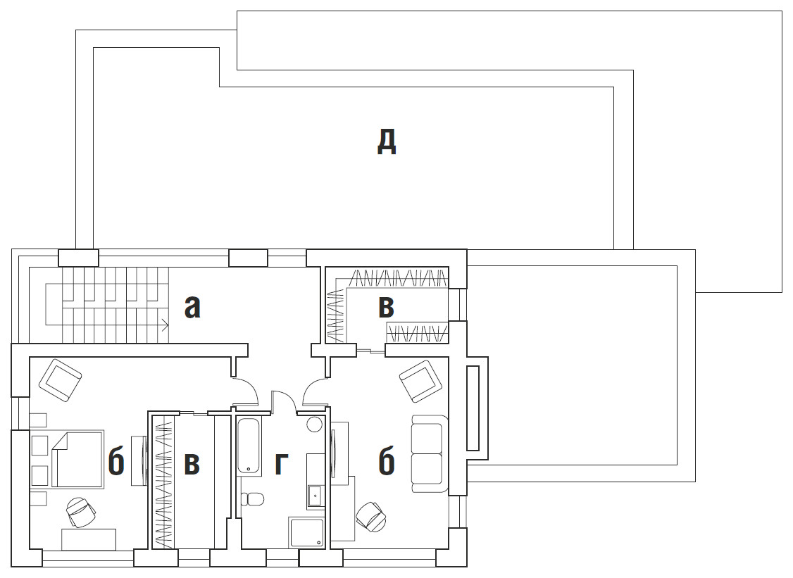 Юлия Скачкова в своей работе придерживается принципов функционализма. «Я решила, что хочу максимально функциональный дом для двух взрослых и двух детей, — объясняет она. — Каждое решение должно иметь значимость и обоснование». Двухэтажный дом органично вписывается в ландшафт и с некоторых ракурсов выглядит одноэтажным. Такой эффект возникает из-за большой террасы на втором этаже и удаленности жилых зон второго этажа, которые как бы отодвинуты вглубь участка. Когда-то Юлия рассматривала одноэтажный дом — лаконичный, неброский, по-европейски скромный. Но дом в один этаж занял бы слишком много места на этом участке, а во-вторых, хотелось сделать планировку компактной, без лишних коридоров. Поэтому часть комнат архитектор «увела» на второй этаж: там расположены детская спальня с санузлом и гардеробной от ALF DAFRE, а еще тренажерный зал, который, если понадобится, легко переформатировать во вторую детскую. На первом этаже — гостиная, кухня-столовая, главная спальня и кабинет.