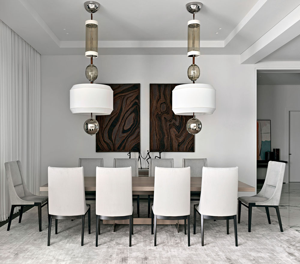 Столовая. Обеденный стол и стулья, Costantini Pietro. Люстры над обеденным столом, дизайн Edward Van Vliet, ITALAMP