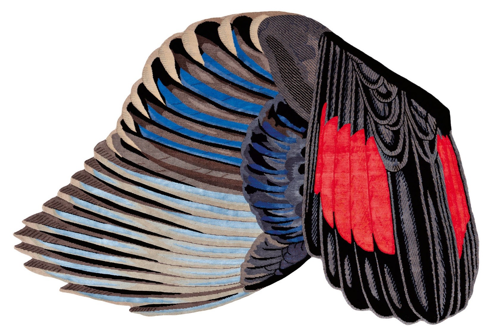 Голландец Маартен де Сеулаер делает коллажи из своих фотографий, используя Photoshop, а затем переводит получившиеся изображения в прикладную графику. Так рождаются рисунки новых ковров, которые дизайнер придумал для CC–Tapis, итальянской марки с производством в Непале. Коллекция получила название Feathers («Перья») и включает две разные модели, сотканные из шерсти и шёлка.