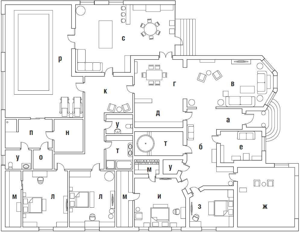 Когда к Ирине Скоробогатовой попал объект, полным ходом шла работа по реорганизации объёма. К дому площадью 250 квадратных метров хозяева пристраивали ряд новых помещений: бассейн, хаммам, террасу, детские комнаты, три санузла, гардеробные и технические помещения. Поэтому первое, что нужно было сделать дизайнеру, — грамотно «собрать» пространство, продумать логистику, функционал и интегрировать вновь возводимые комнаты в исходную планировку. «Это была сложная и вместе с тем интересная задача, — поясняет Ирина. — Столовую мы совместили с террасой, барбекю, спа–зоной и бильярдной, она стала центром притяжения семьи, превратилась в многофункциональное пространство для отдыха и развлечений. Для детей сформировали отдельный блок со спальнями, игровой, гардеробной, ванной и санузлом. Главную гостиную объединили с каминной группой и местом для игры в шахматы, а кухню отделили высоким порталом, украшенным лепным декором и зеркалами, которые визуально стирают границы между помещениями. Обычный дом изменился до неузнаваемости: мало того что площадь увеличилась почти в два с половиной раза, он теперь соответствует самым высоким современным стандартам».