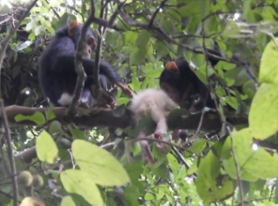 Зоологи впервые описали реакцию диких шимпанзе на сородича-альбиноса — в данном случае это был детеныш возрастом чуть старше двух недель. Впервые увидев необычного младенца, другие члены стаи начали издавать встревоженные крики и нападать на его мать. На следующий день альфа-самец оторвал детенышу руку, после чего одна из самок добила его укусом в голову. Как отмечается в статье для журнала The American Journal of Primatology, скорее всего, шимпанзе восприняли альбиноса как угрозу из-за его необычного внешнего вида.