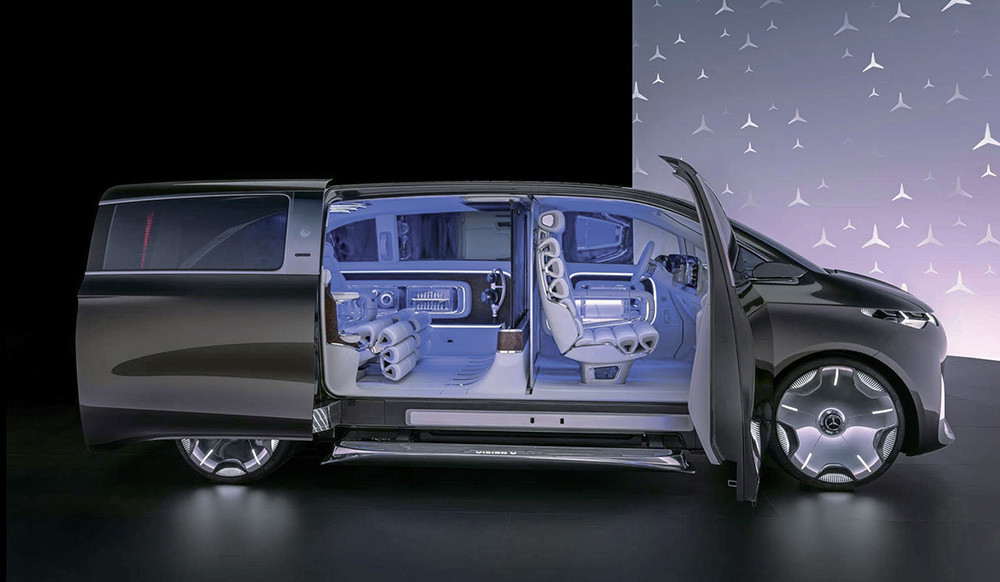 Mercedes, кажется, последним уловил, что властители мира начали пересаживаться из лимузинов в сверхроскошные минивэны. Когда-то Mercedes-Benz был синонимом богатства, но сейчас компания пытается угнаться за китайцами, люксовые машины которых представляют собой нечто среднее между дворцом императора и звездолетом из фантастического фильма. В концепте VLE все на своих местах: стеклянная перегородка между передними и задними сиденьями, нежнейшая белая кожа, хрусталь и полированный алюминий. Автомобиль, опять же, электрический и ориентирован на азиатский рынок. Только вот посетители салона проходят мимо: на других стендах поинтереснее.