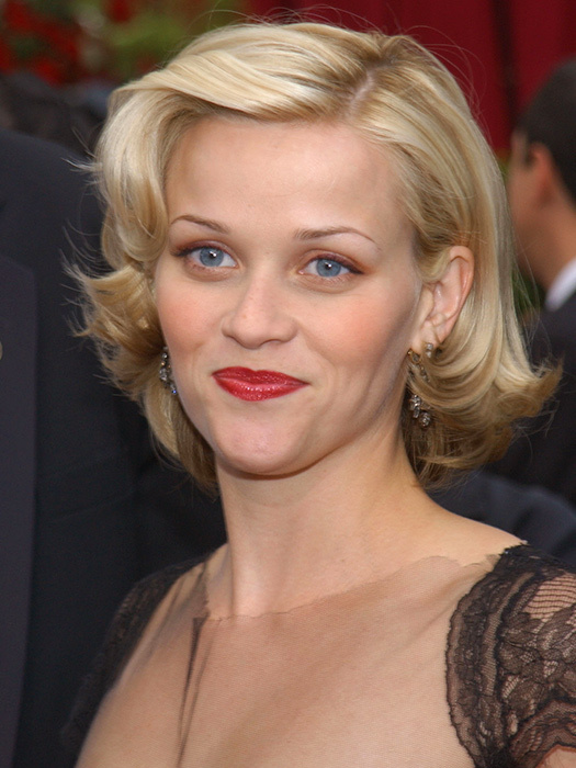 Кажется, у Риз Уизерспун появился стилист: косая профилированная челка делает лицо менее «треугольным» и отвлекает внимание от острого подбородка.